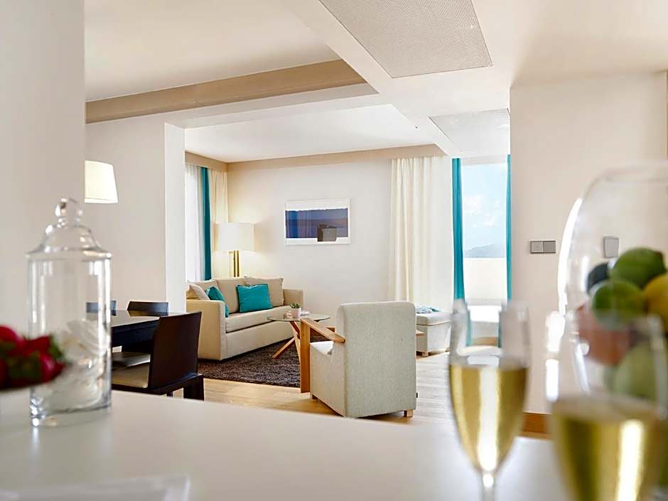 This comfortable suite features a separate bright lounge and a private balcony boasting sea views.